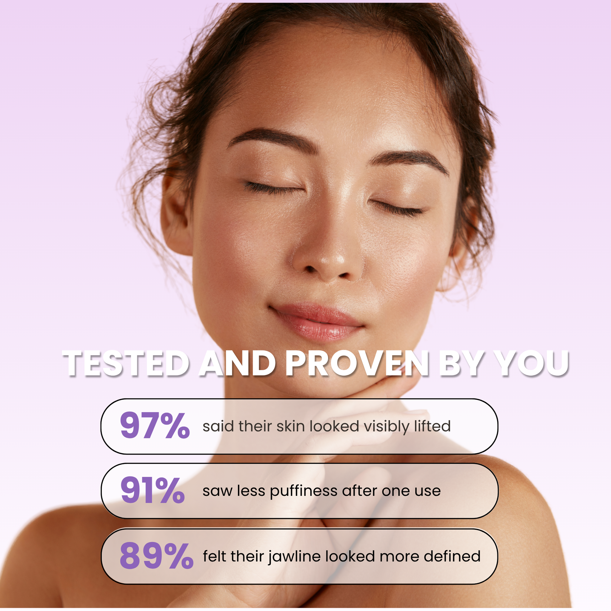 You’ll begin to notice an instant boost—your skin looks fresher, more radiant, and lightly firmed after each use. Puffiness, particularly around the eyes and jawline, starts to ease, and your complexion takes on a smoother, healthier glow. Even at this early stage, your skin feels more energized and refreshed, setting the foundation for deeper transformation ahead.